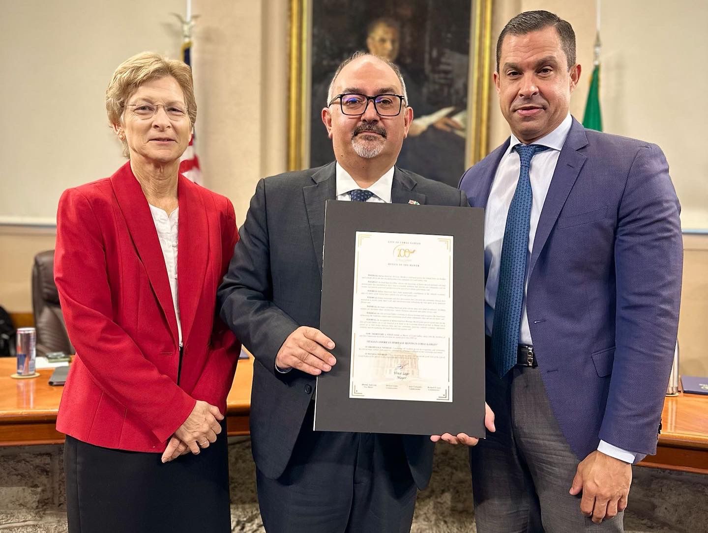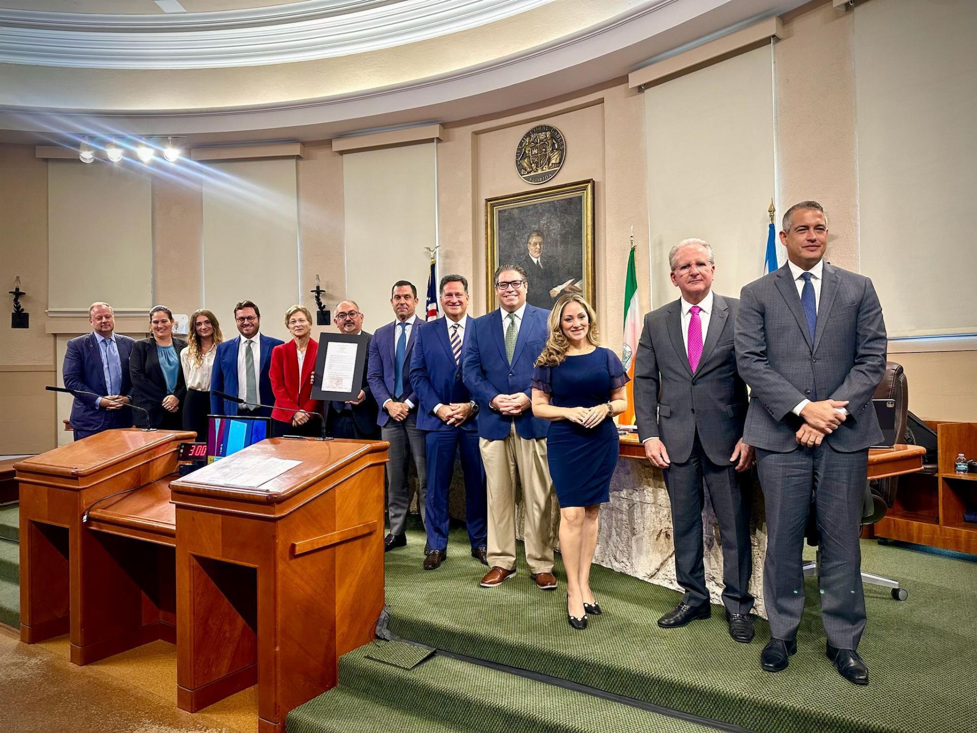Città di Coral Gables – Il Sindaco Vince Lago ha accolto i rappresentanti del Consolato al City Hall durante una seduta pubblica, consegnando una Proclamation che conserveremo con grande orgoglio.