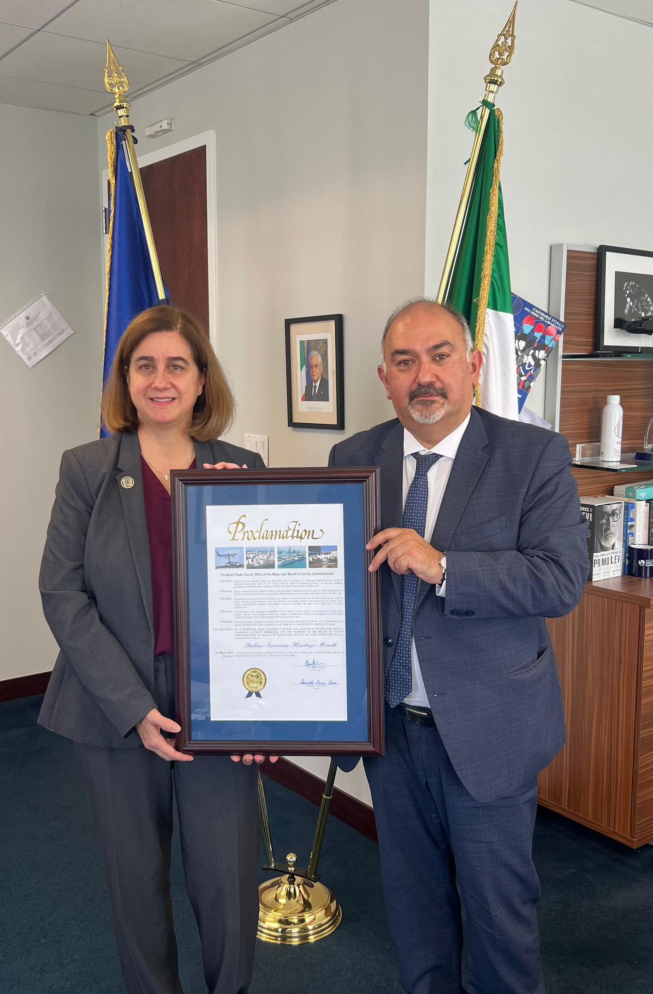 Contea di Miami-Dade – La Sindaca Daniella Levine Cava ha reso omaggio alla comunità italo-americana con una Proclamation ufficiale, consegnata presso il Consolato da Maria Dreyfuss, Vice Direttrice per lo Sviluppo Economico della Contea di Miami-Dade.